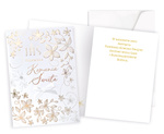 Kartka okolicznościowa Pierwsza Komunia Święta, złote kwiaty, 1 szt.