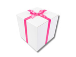 Bielone Pudełko kartonowe - klapowe - 50 x 50 x 50 cm - tasiemka ciemnoróżowa