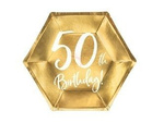 Talerzyki urodzinowe, 50th Birthday!, Złote - 6 sztuk