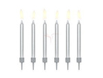 Świeczki urodzinowe, Gładkie, Srebrne - 6 cm - 6 sztuk