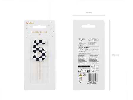 - Świeczka urodzinowa Cyferka ze wzorem szachownicy, rozmiar ok. 5.5 cm.