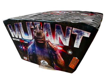 - Wyrzutnia Mutant 30 mm oferuje 64 potężne strzały i imponującą mieszankę kolorów, cracklingu oraz masywnych rozbłysków. Mocny finał i wysokie wyniesienie czynią ją idealnym wyborem dla osób szukających efektownego, głośnego i widowiskowego pokazu.