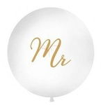 Balon lateksowy 1m, Okrągły, Biały, Złoty napis "Mr"